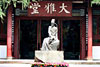 杜草堂檐廊结构布局紧凑,经多次修复,建筑从正门始,依次是大庙、诗史堂、柴门、工部祠、“少陵草堂”碑亭等。其中大庙、柴门是杜诗中提到的草堂原有建筑,诗史堂正中是铜色杜甫立像,堂内陈列有历代名人题写的楹联、匾额。工部祠内供奉有杜甫的泥塑像和画像。(编辑:CCN传媒 李琳)
